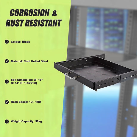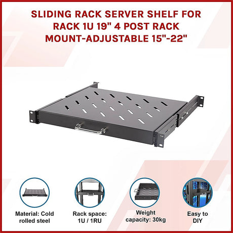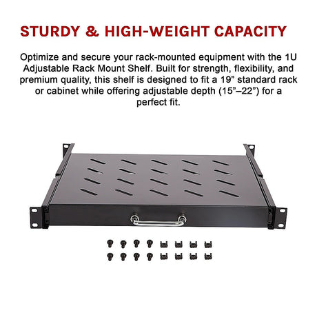 Sliding Rack Server Shelf 1U 19" 4 Post Mount – Adjustable 15" to 22" Rack Tray