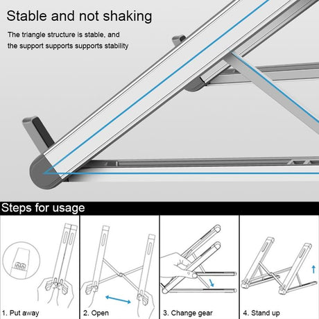 Foldable Aluminum Laptop Stand for Desktop Cooling - Elegant Silver
