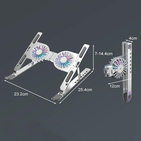 Foldable Laptop Stand with Fan and Heater - Portable and Adjustable - Silver