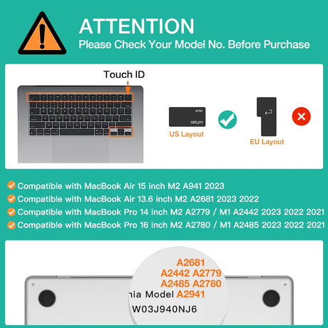 Keyboard Cover Skin For MacBook Pro 13 Pro 16 A2338 A2289 A2251 A2141 M1 M2 2020 to 2023 Sky Blue