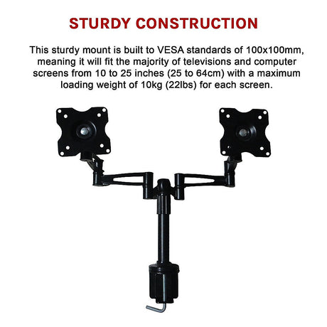 Two-Screen 10-25 Desk Monitor TV Plasma LED LCD Work Mount