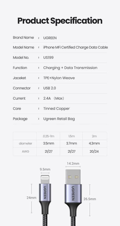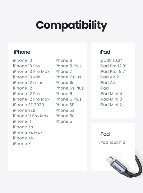 UGREEN 2M MFI Certified Lightning to USB Cable (20730)