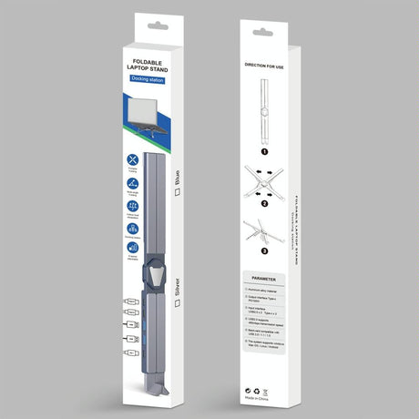 Versatile Laptop Docking Stand with Enhanced Cooling and Folding Design - Silver
