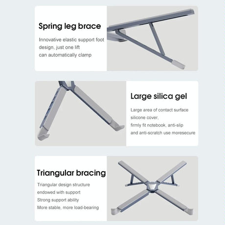 Versatile Laptop Docking Stand with Enhanced Cooling and Folding Design - Gray