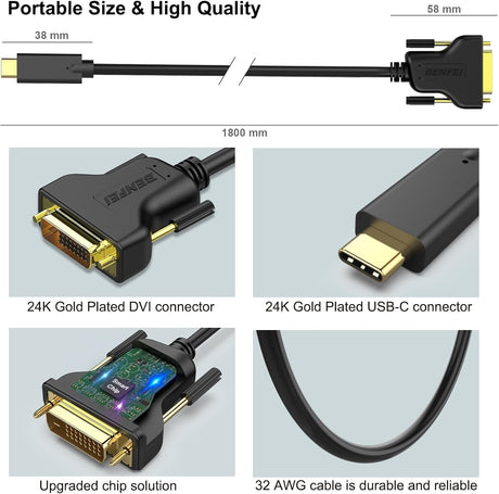 BENFEI DisplayPort to DVI 1.8m (6 Feet) Cable