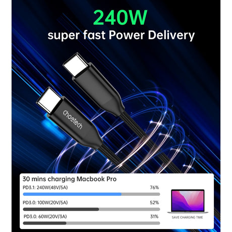 CHOETECH 240W Super Fast USB-C Gen3 Cable - 1.2M, Compatible with MacBook & More