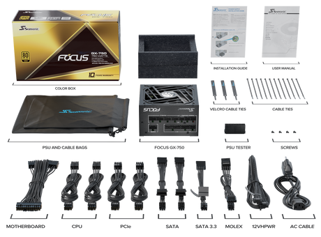 Seasonic FOCUS GX-750 ATX 3.0 750W Gold PSU (SSR-750FX3)