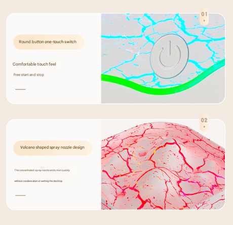 Green Volcano Style 2L Cool Mist Humidifier - Triple Nozzle with RGB LED & Quiet Operation