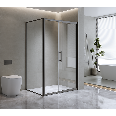 150mm Adjustable (1850x800mm) Single Door Corner Sliding Glass Shower Screen in Black