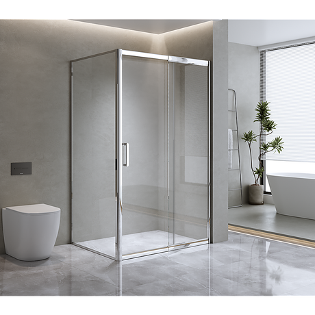 Adjustable 1400x800mm Single Door Corner Sliding Glass Shower Screen in Chrome