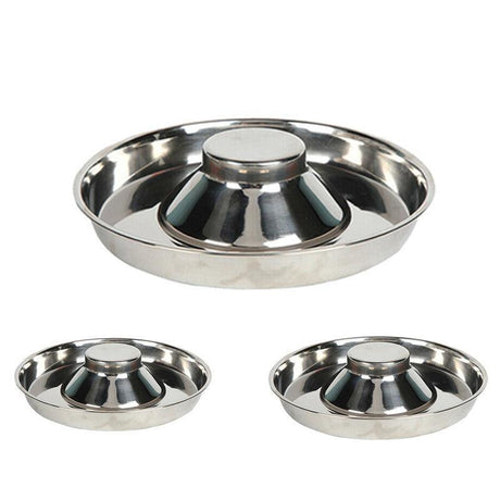 Stainless Steel Pet Bowl Slow Feeder Dish Puppy Dog Cat Food Feeding Weaning Bowl - L