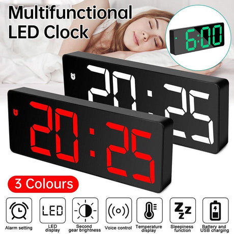 LED Digital Alarm Clock Large Display Dual Power Options Home Office Decor - Red