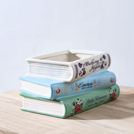 Literary Book Vase - Creative Ceramic Planter & Desk Organizer(Stack of books)