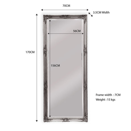 French Provincial Ornate Mirror - Antique Silver - Medium 70cm x 170cm
