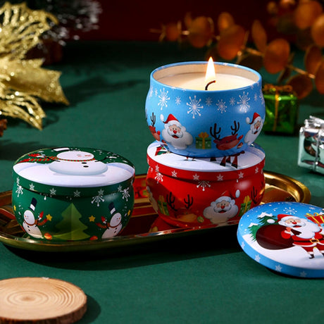 4 Pcs of Scented Candle Tinplate Jar Wax Plant Candle Christmas Gift