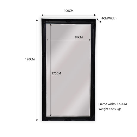 French Provincial Ornate Mirror - Black - Free Standing 50cm x 170cm