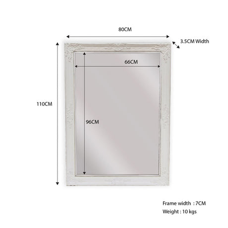 French Provincial Ornate Mirror - White - Small 80cm x 110cm