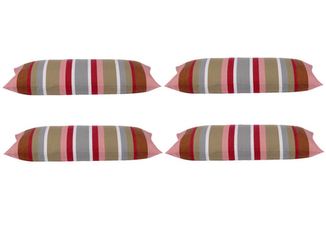 Pack of 4 Corban Rose Pink Based Striped Cushion Cover Multicoloured Rectangle 35x70cm