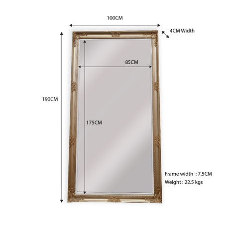 French Provincial Ornate Mirror - ANTIQUE CHAMPAGNE - X Large 100cm x 190cm