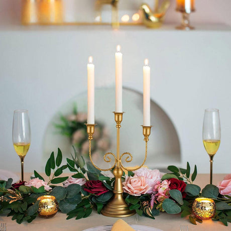 Set of 3 Decorative Candlestick Holder Candle Stand for Wedding / Dinner / Party - French Gold