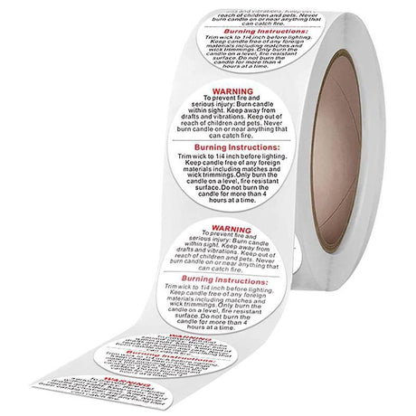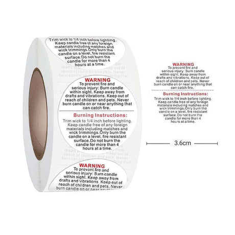 500PCS Candle Warning Labels Roll Round Stickers for Jars Wax Melts Containers