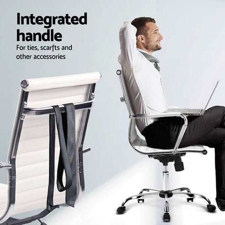 Artiss Computer Desk 120cm Executive Office Chair Set PU Leather High Back White