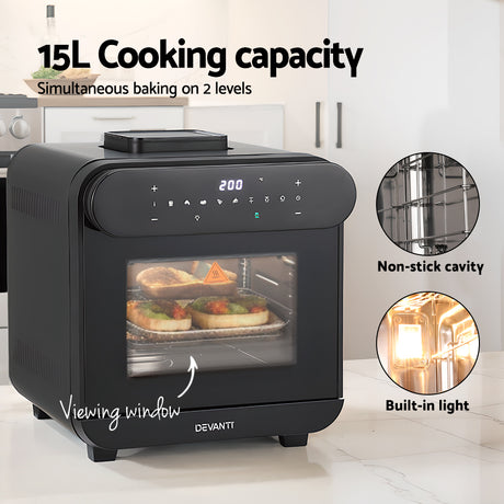 Devanti Steam Air Fryer Oven 15L W/ LCD Touch 1600W