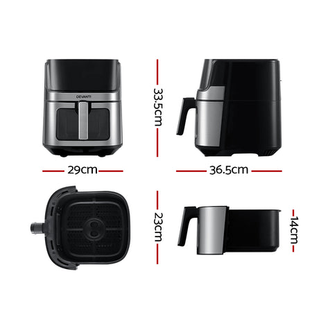 Devanti 6.5L Oil-Free Air Fryer with LCD Touch Control and Clear Viewing Window