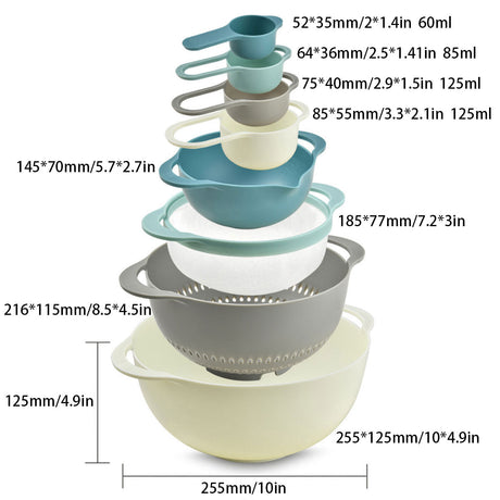 8pcs Plastic Basin Set Drain Basket Washing Mixing Bowl Set Kitchen Baking Tools