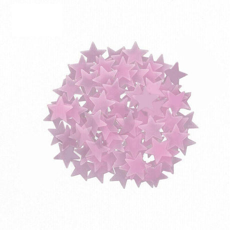 100 Pieces Glow-in-the-Dark Luminous Star Wall Stickers for Bedroom or Ceiling Decor - Pink