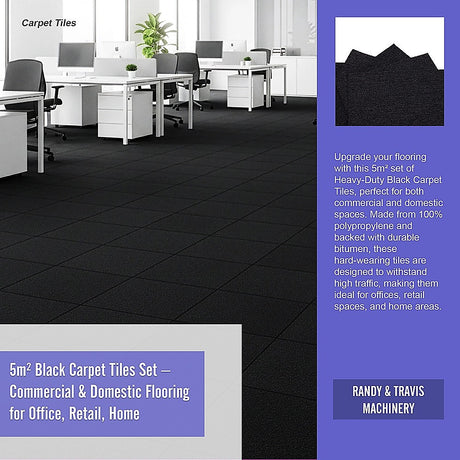 5m² Black Carpet Tiles Set – Commercial & Domestic Flooring for Office, Retail, Home