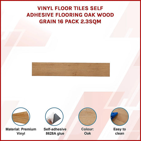Vinyl Floor Tiles Self Adhesive Flooring Oak Wood Grain 16 Pack 2.3SQM