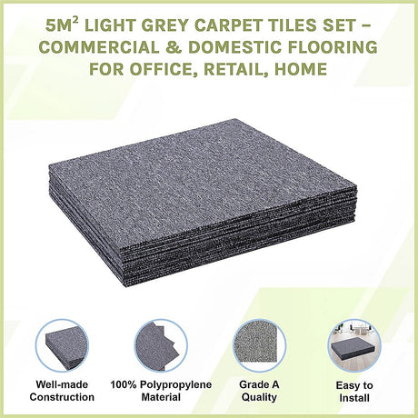 5m² Light Grey Carpet Tiles Set – Commercial & Domestic Flooring for Office, Retail, Home