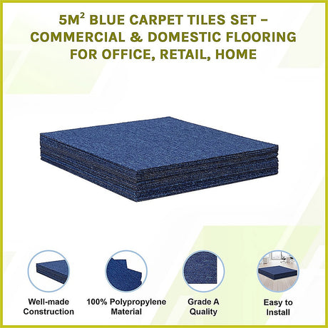 5m² Blue Carpet Tiles Set – Commercial & Domestic Flooring for Office, Retail, Home