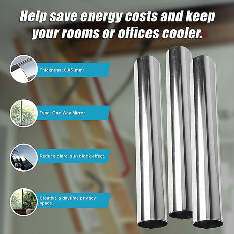 One Way Mirror Privacy Reflection Window Tint Film STOP HEAT 24Ft x 2Ft