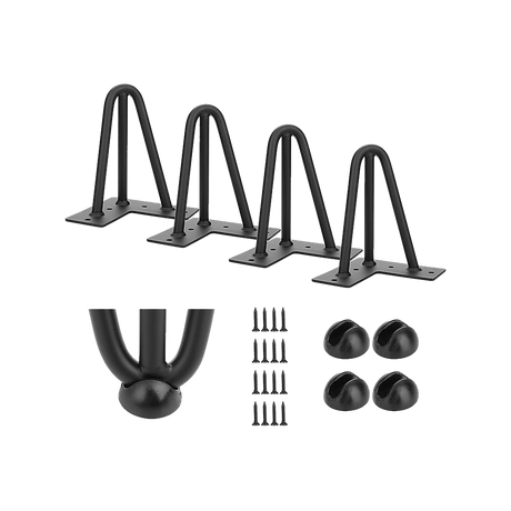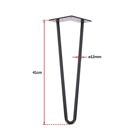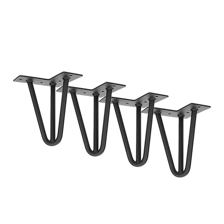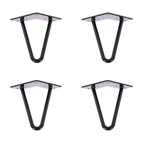 Set of 4 Industrial Retro Hairpin Table Legs 12mm Steel Bench Desk - 41cm Black