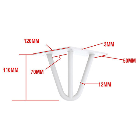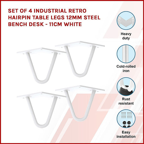 Set of 4 Industrial Retro Hairpin Table Legs 12mm Steel Bench Desk - 11cm White