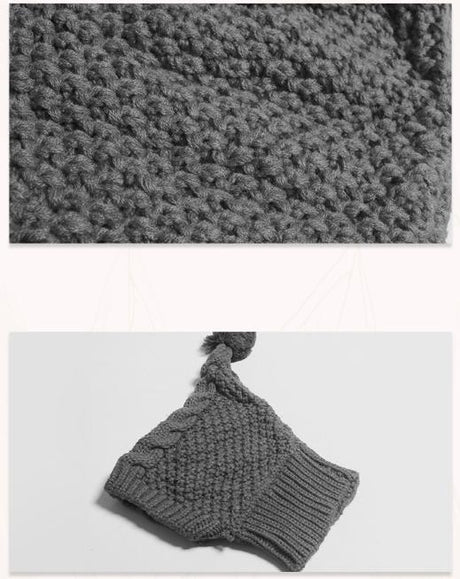 Size L Grey Whimsical Knit Dog Hat with Pom-Pom - Cozy Winter Pet Beanie & Snood