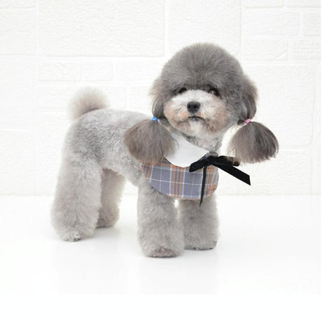 Dog Shawl Small Cloak Pet Bow Ttie Saliva Towel Pet Accessories - Size S - Navy Blue Grid