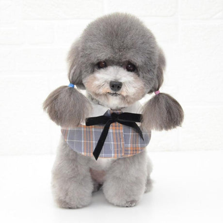 Dog Shawl Small Cloak Pet Bow Ttie Saliva Towel Pet Accessories - Size S - Gray Yellow Grid