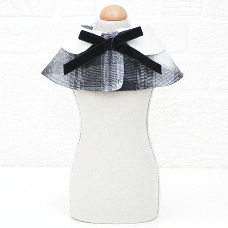 Dog Shawl Small Cloak Pet Bow Ttie Saliva Towel Pet Accessories - Size S - Black White Grid