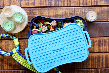 4-in-1 Slow Feeder Dog Bowl - Blue Bowl and Warm Ocean Red Lickmat