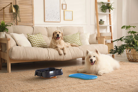 4-in-1 Slow Feeder Dog Bowl - Dark Grey Bowl with Blue Lickmat
