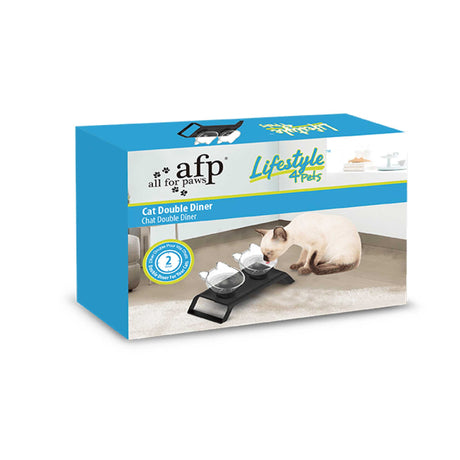 2x200ml Elevated Cat Bowl Stand - Double Dinner Pet Kitten Food Twin Feeder