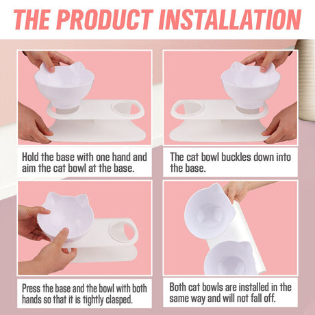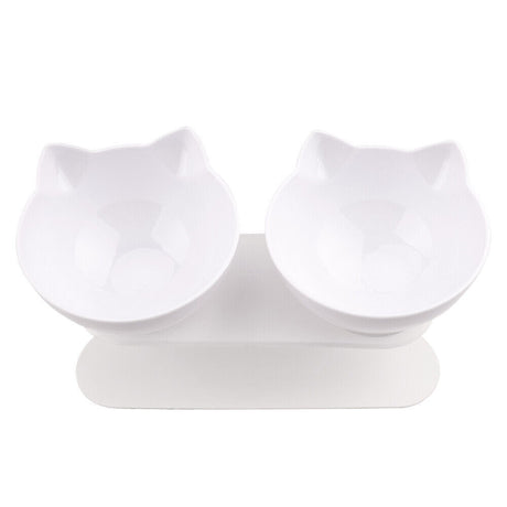 White Double Cat Bowl Pet Bowls Stand Dog Elevated Feeder Food Water Raised Lifted