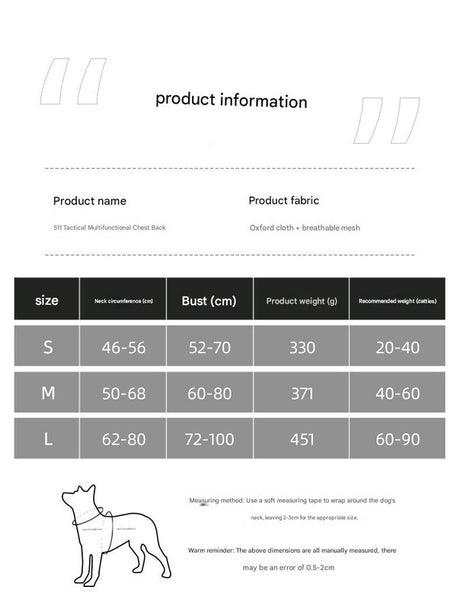 Black Tactical Dog Training Harness - Adjustable Vest for Training and Walking - M