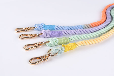 Premium Leather Pet Collar and Leash - Soft, Strong Braided Rope (Pink green - Size S)