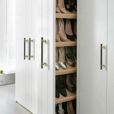 5PCS Black Kitchen Cabinet Door Handles Stainless Steel Door Drawer Pull T Bar - 50mm