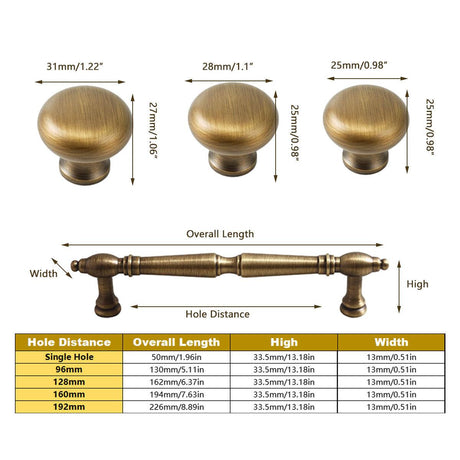 4 Sizes Brass Handles Vintage Cabinet Drawer Pulls for Wardrobe Door Furniture - Single Hole