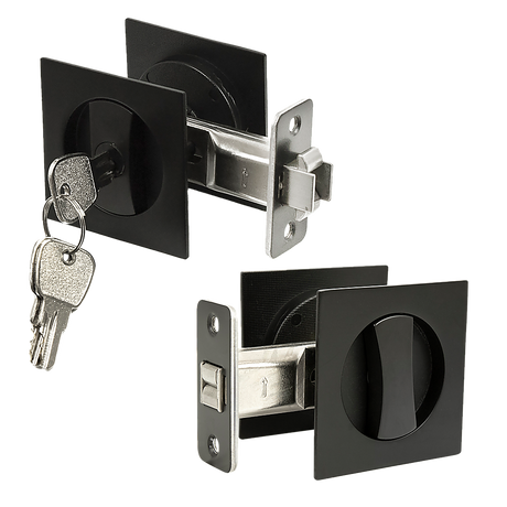 2x Contemporary Entry Square Pocket Door Hardware with Key